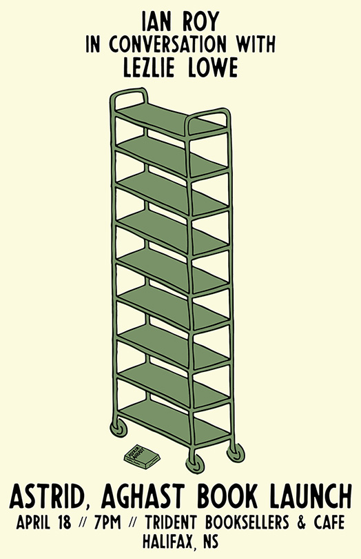 Join author Ian Roy in conversation with Lezlie Lowe about Ian’s new book from Gaspereau Press, Astrid Aghast! We’ll have conversation, reading, an interview, drinks and treats, and of course, books!
