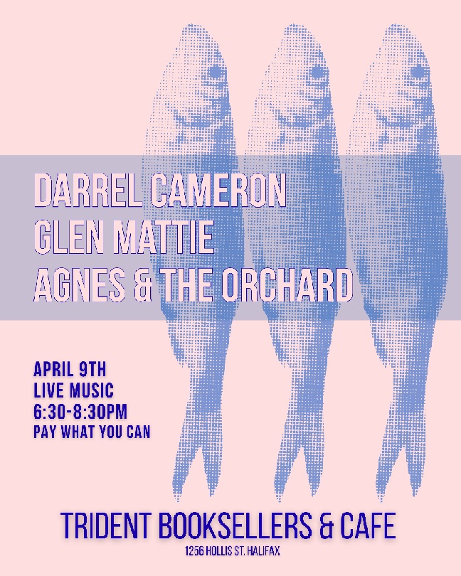 This Thursday we've got a stacked lineup of singer songwriters! Join us for Agnes & the Orchard, with guests Darrel Cameron & Glen Mattie! Music starts at 6:30pm, cover PWYC ($10 recommended.) When: Thursday, April 9th 2026 @ 6:30pm Where: Trident Booksellers & Cafe, 1256 Hollis St. Halifax